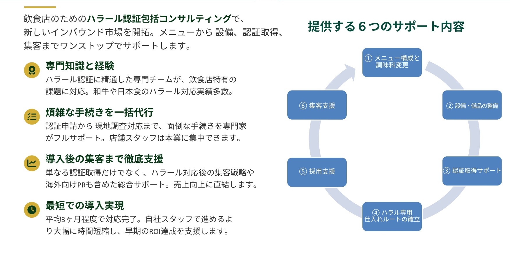 高品質な和食を求めるムスリム観光客のニーズは極めて高いものの、対応店舗の不足により、年間数千万円規模の売上機会を逃している飲食店が大多数です。